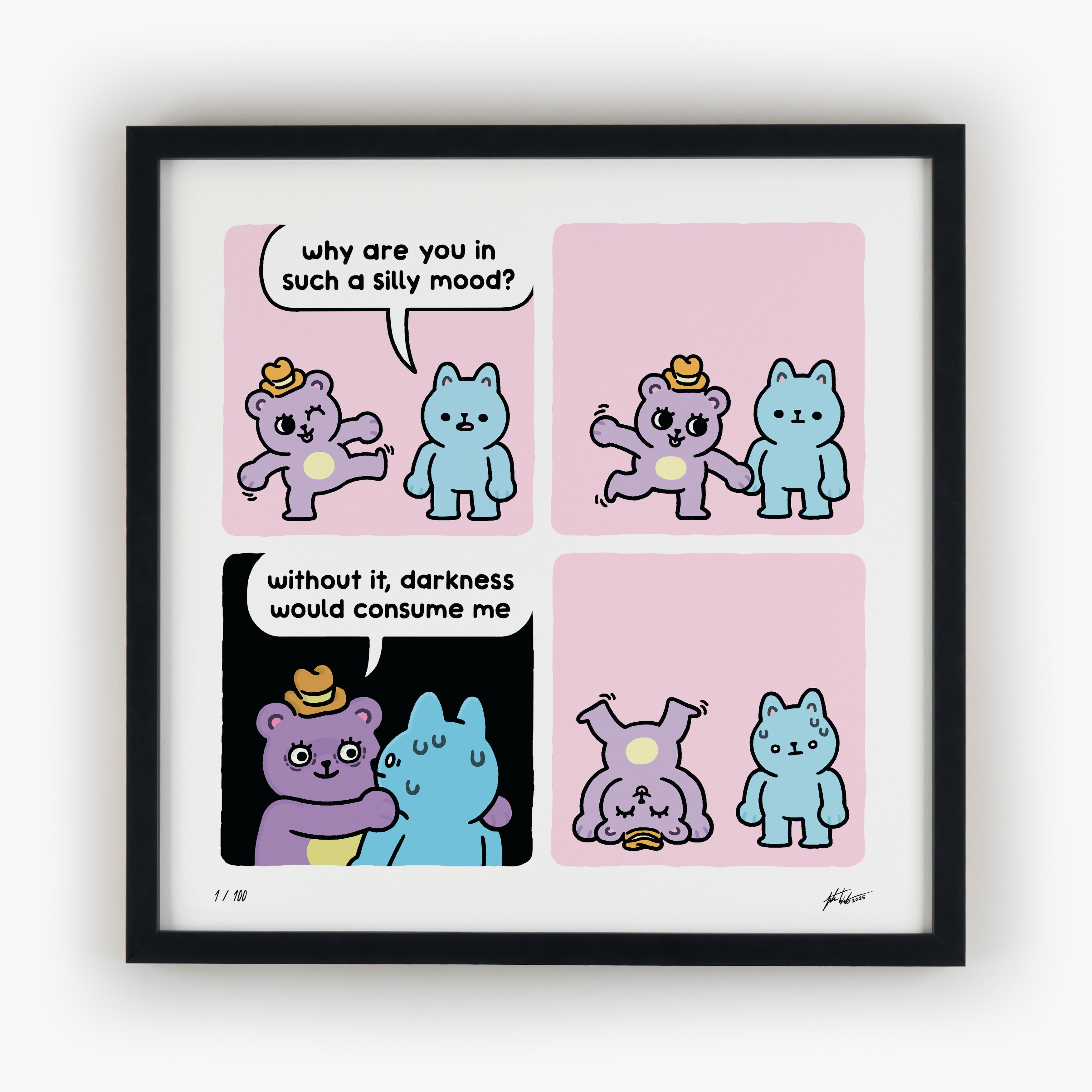 Keep the darkness at bay with this silly print. I made sure this print met my unreasonably high standards of quality. Premium thicc-ass textured paperstock. Artist grade giclée ink. I don’t know how to pronounce giclée either, but it’s really fucking good.